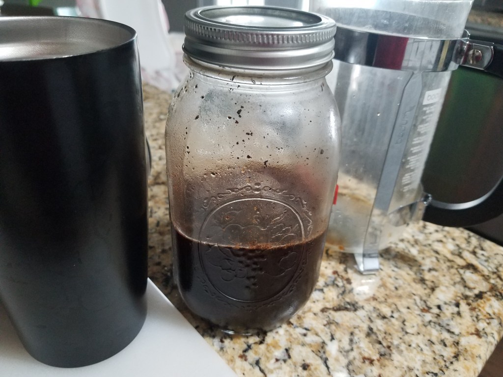 For the cold brew, I used twice the amount of grounds for the same amount of water, but the water was unheated. Once the grounds were added, it was capped off and placed in the fridge for 24-36 hours. I always tasted it unaltered, but put varying amounts of 2% milk or cream and Splenda sweetener in them (because I’m basic).