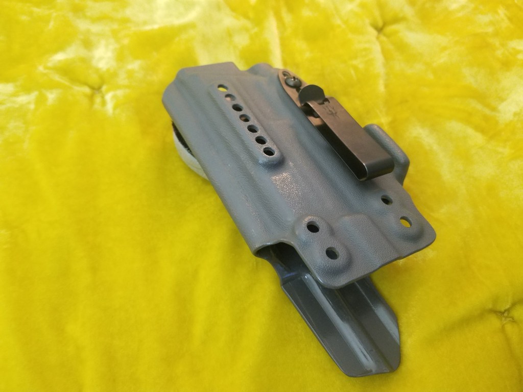 Gundo IWBX (wolf gray). Clip is from Discrete Carry Concepts. Wedge is from V Dev Group. I discussed both at length here. The clip is awesome, not sure about the wedge. I don’t dislike it, I’m just not entirely sure how effective it is. The holster conceals my full sized M&P better than my HAWG Holster conceals my LCRx, I just don’t know how much of that is because of the wedge.