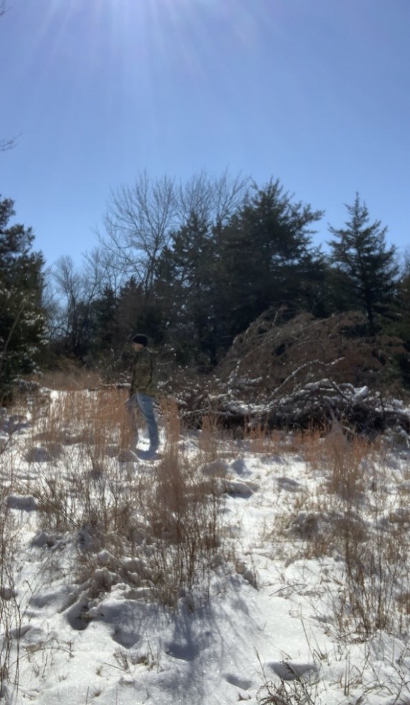 Left: Example of a transitional space with a mixture of snow and vegetation. Right: The author wore multicam, a camouflage not even optimized for this specific environment, to prove its effectiveness versus wearing a white jacket. A good recommendation is usually white bottoms with earthy tones to match the ground, or even accent it in certain areas so it looks like snow, and a camo top of some kind.