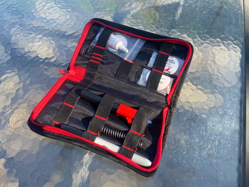 The CoolFire Trainer is a device that replaces your barrel and recoil spring assembly with a small, pressurized tank and a proprietary replacement recoil assembly. It small puffs of CO2 gas, triggered by the gun’s striker, which cycles the slide. It replicates your gun’s recoil and resets the trigger, giving you the most realistic dryfire experience possible without using real ammo. Since it displaces your barrel, it also renders your firearm completely inert as well. The barrel/tank is also painted a nice, bright red color. I really appreciate this detail, as it allows users to quickly tell at a distance what they are holding.