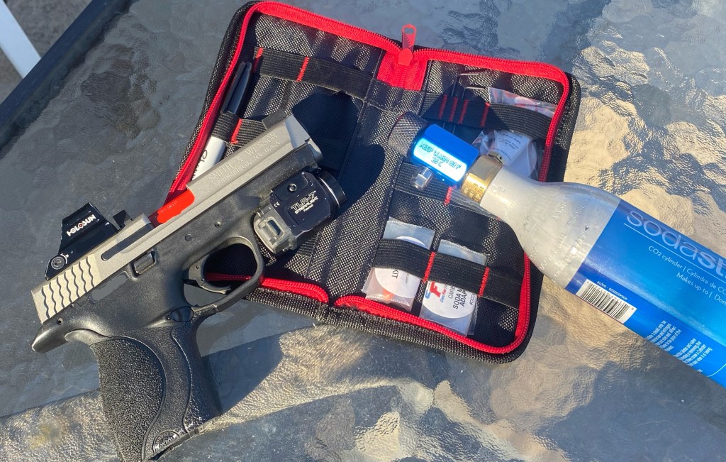 What does not work for warming the bottle is just leaving it outside between sessions. Yes, the summer heat will soak into the bottle, but after leaving my source bottle outside for less than a week the elements had seized some part of the soda maker adapter, and it would no longer pressurize my trainer’s tank. $60 and a week later I received a new soda maker adapter and it worked again. The problem is that it took me almost a year to break down and buy a new bottle adapter. As I mentioned earlier, this is not an indictment of CoolFire. I just had expected it to be “toss-in-the-dirt-and-go” robust like a Glock or M&P. If you consider it to be a something that isn’t at the admittedly exceptional durability level of a modern handgun design, you can avoid the stupid mistakes I made.